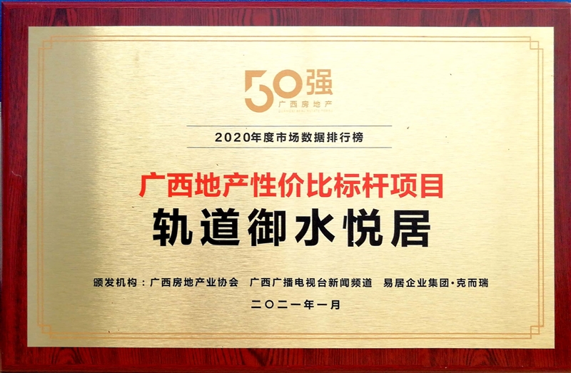 • 軌道御水悅居獲得廣西地產(chǎn)性價比標(biāo)桿項(xiàng)目稱號