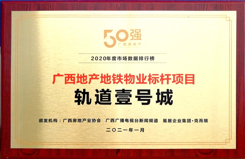 • 軌道壹號城獲得廣西地產(chǎn)地鐵物業(yè)標(biāo)桿項(xiàng)目稱號