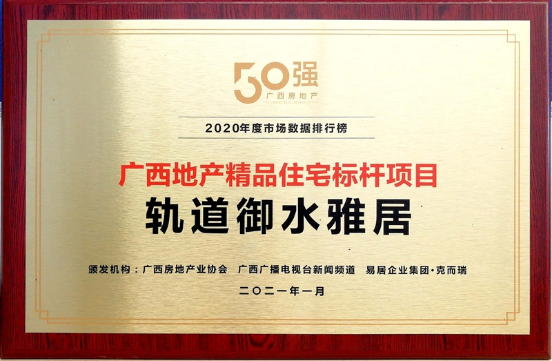 • 軌道御水雅居獲得廣西地產(chǎn)精品住宅標(biāo)桿項(xiàng)目稱號