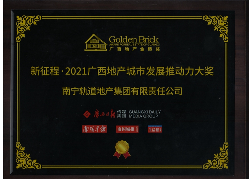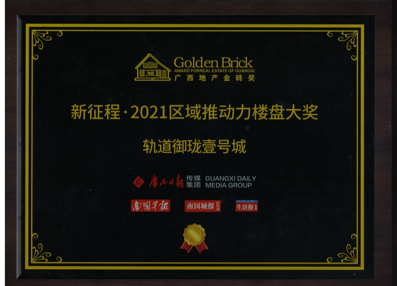 • 軌道御瀾上城項(xiàng)目獲得廣西地產(chǎn)金磚獎“新征程·2021城市TOD標(biāo)桿物業(yè)大獎”