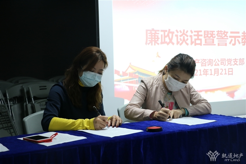 活動(dòng)中,軌道地產(chǎn)咨詢公司黨支部書記、董事長(zhǎng)劉燕組織與會(huì)人員學(xué)習(xí)了《關(guān)于兩起違反中央八項(xiàng)規(guī)定精神問題典型案例的通報(bào)》等相關(guān)文件,并集中觀看了警示教育片《縣委書記為何滑向深淵》。軌道地產(chǎn)咨詢公司各部門、各項(xiàng)目負(fù)責(zé)人還與黨支部書記劉燕簽訂了《黨風(fēng)廉政建設(shè)承諾書》。