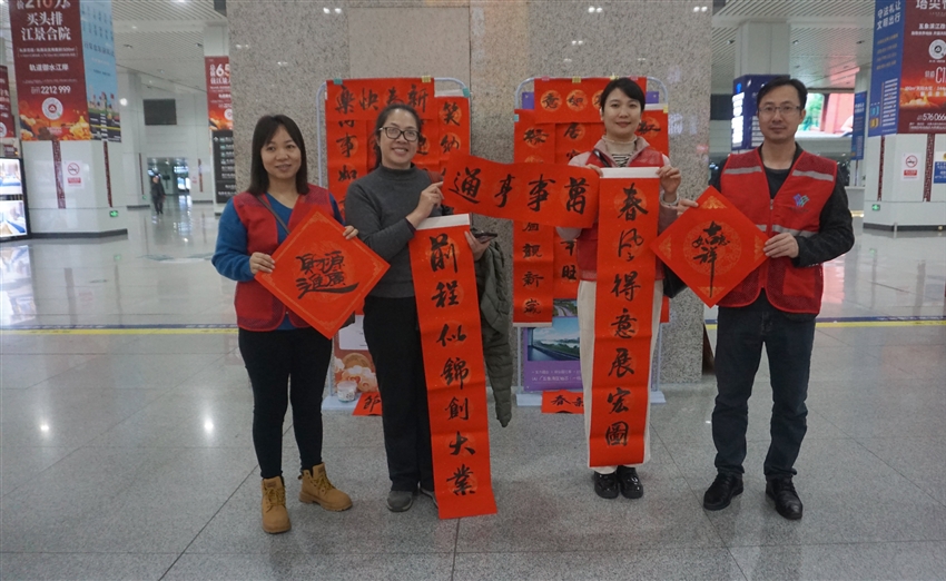 1月23日上午軌道地產(chǎn)建筑公司黨支部與南湖街道屯里社區(qū)黨總支攜手,南寧火車(chē)東站南廣場(chǎng)開(kāi)展一場(chǎng)別開(kāi)生面的送春聯(lián)、贈(zèng)福字活動(dòng)。社區(qū)黨員與企業(yè)黨員志愿者積極參與,為奔波在春運(yùn)途中的人們送去滿滿溫暖與新春祝福。