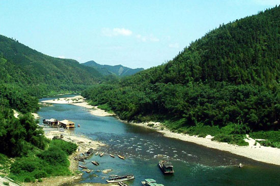 乘著小船游蕩在清澈見(jiàn)底的融江上,兩崖修竹挺立,草兒碧青,令人心醉神迷。到了一片漂亮的蘆葦區(qū),大家歡呼著下了船。愛(ài)攝影的尋找最佳角度,喜歡奇石的盡情挑選河石,愛(ài)美的朋友則三五成群的相互拍照,留下自己美麗的倩影,我當(dāng)然也就成了其中一員。
