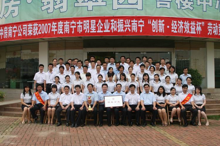 中房南寧公司榮獲2007年度南寧市明星企業(yè)和振興南寧“創(chuàng)新、經(jīng)濟效益杯”勞動競賽金杯獎